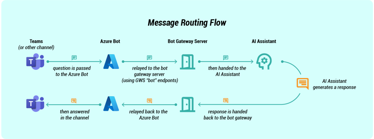 After you've connected the AI Assistant, the Bot Gateway Server, and the Azure Bot resource together, you can start extending the AI Assistant to other channels, such as Microsoft Teams.