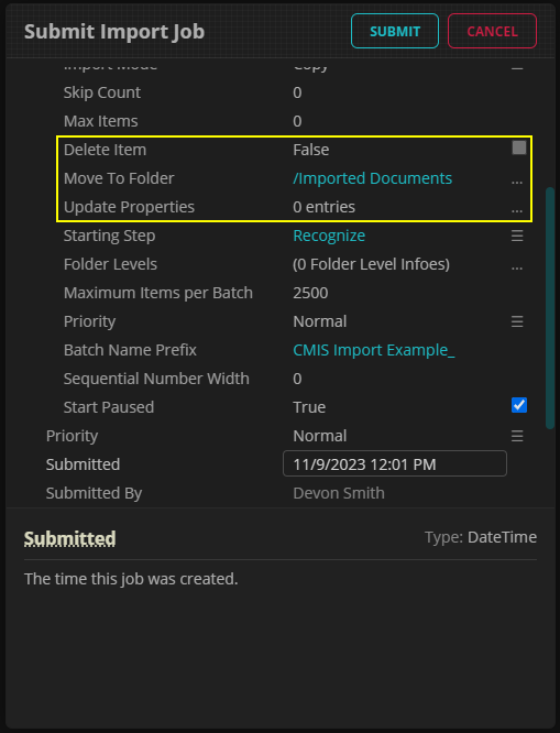• "Delete Item" - Turning this to "True" will simply delete the source file after the Import Job completes.