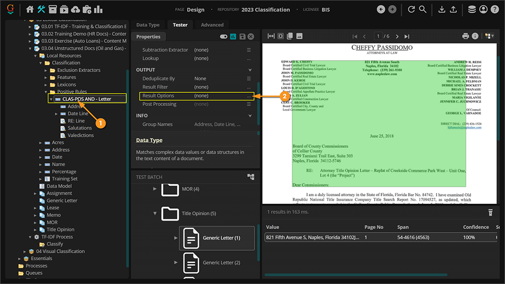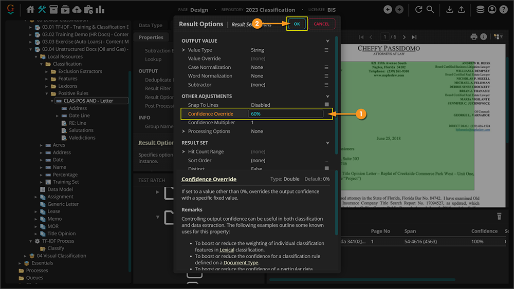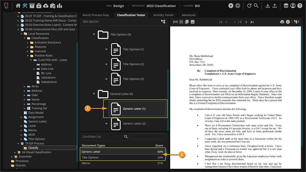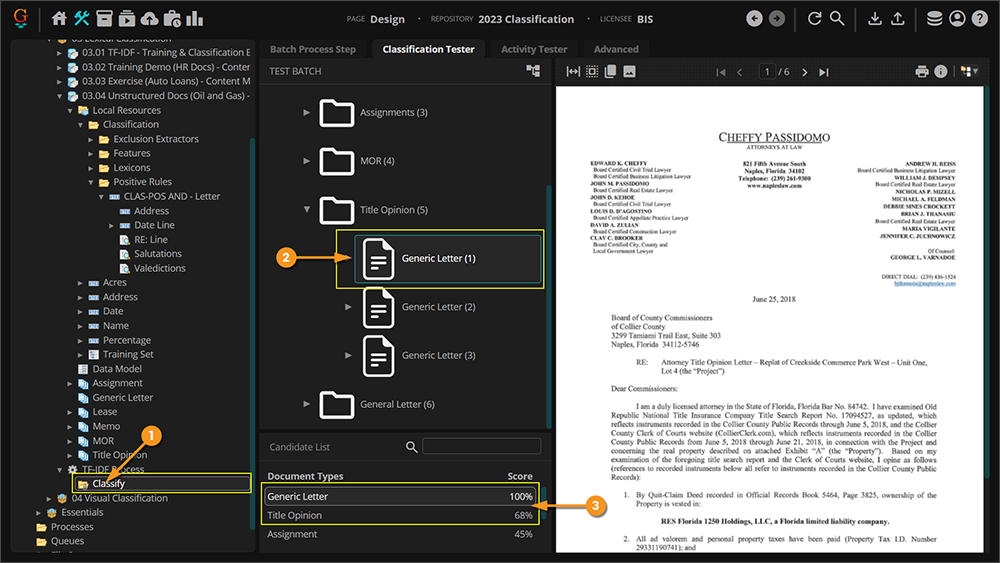 4. The Title Opinion Document Type is still coming in at 68%. However, the Generic Letter Document Type is returning with a 60% similarity score due to the Confidence Override property we set.