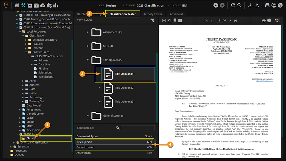 3. Notice that the Title Opinion document is now being classified appropriately.