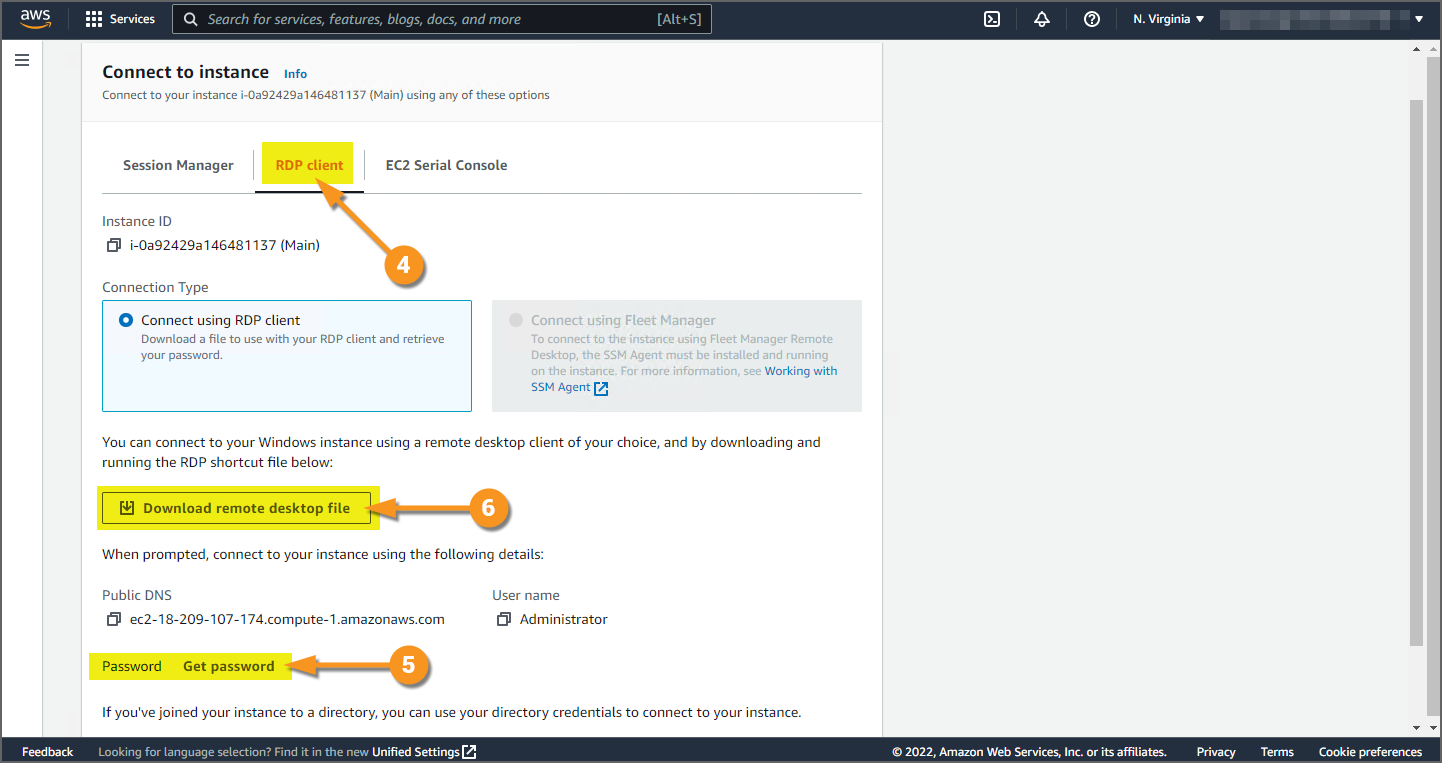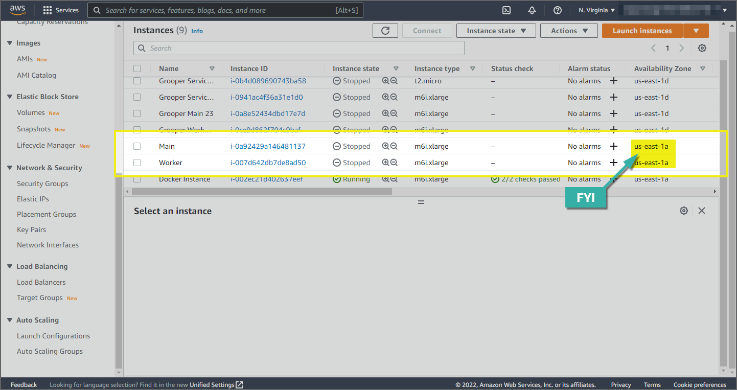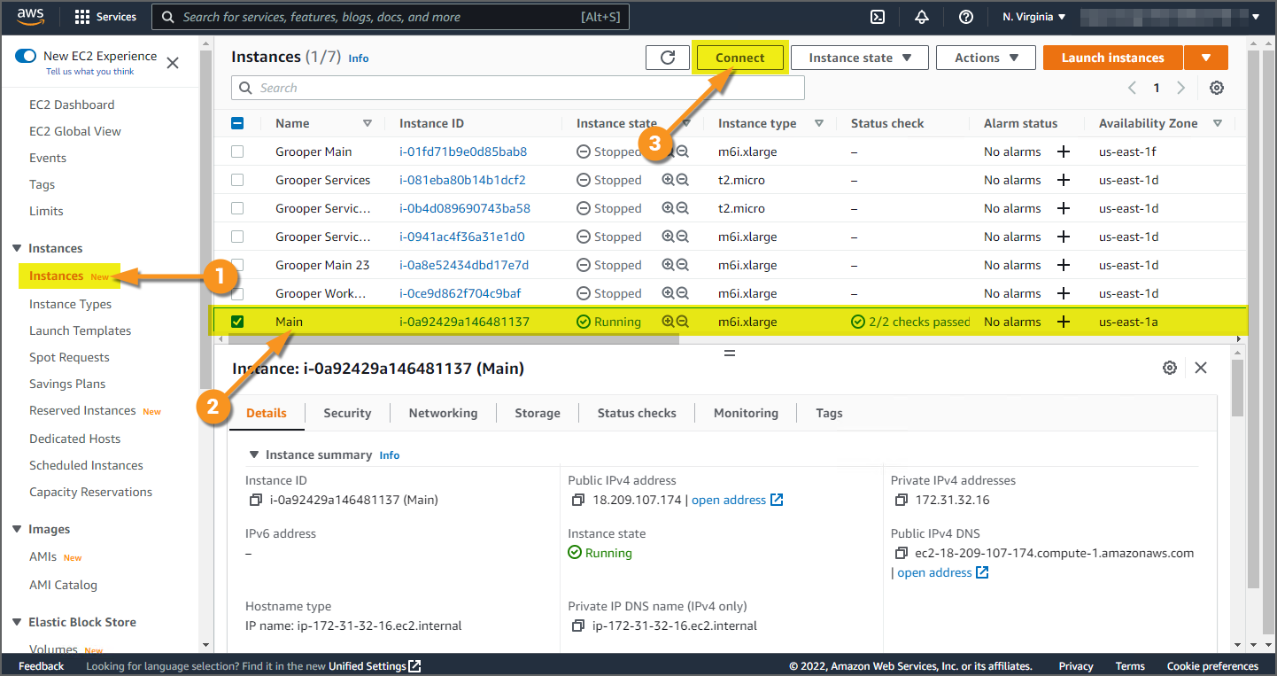 You can copy the Main instance's IP address from the EC2 Dashboard. Simply select the instance using the Instances interface and look for "Private IPv4 addresses" in the Details tab. |