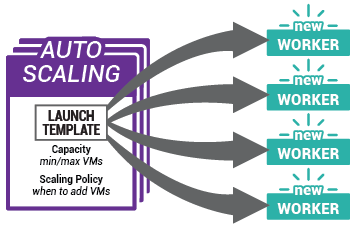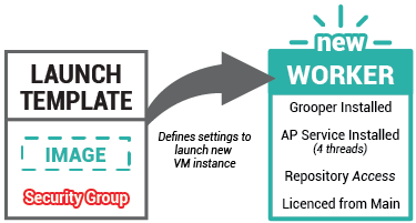 - Auto Scaling will use the Launch Template to create new Worker instances, using the AMI created in step 5, and assign the right Security Group.