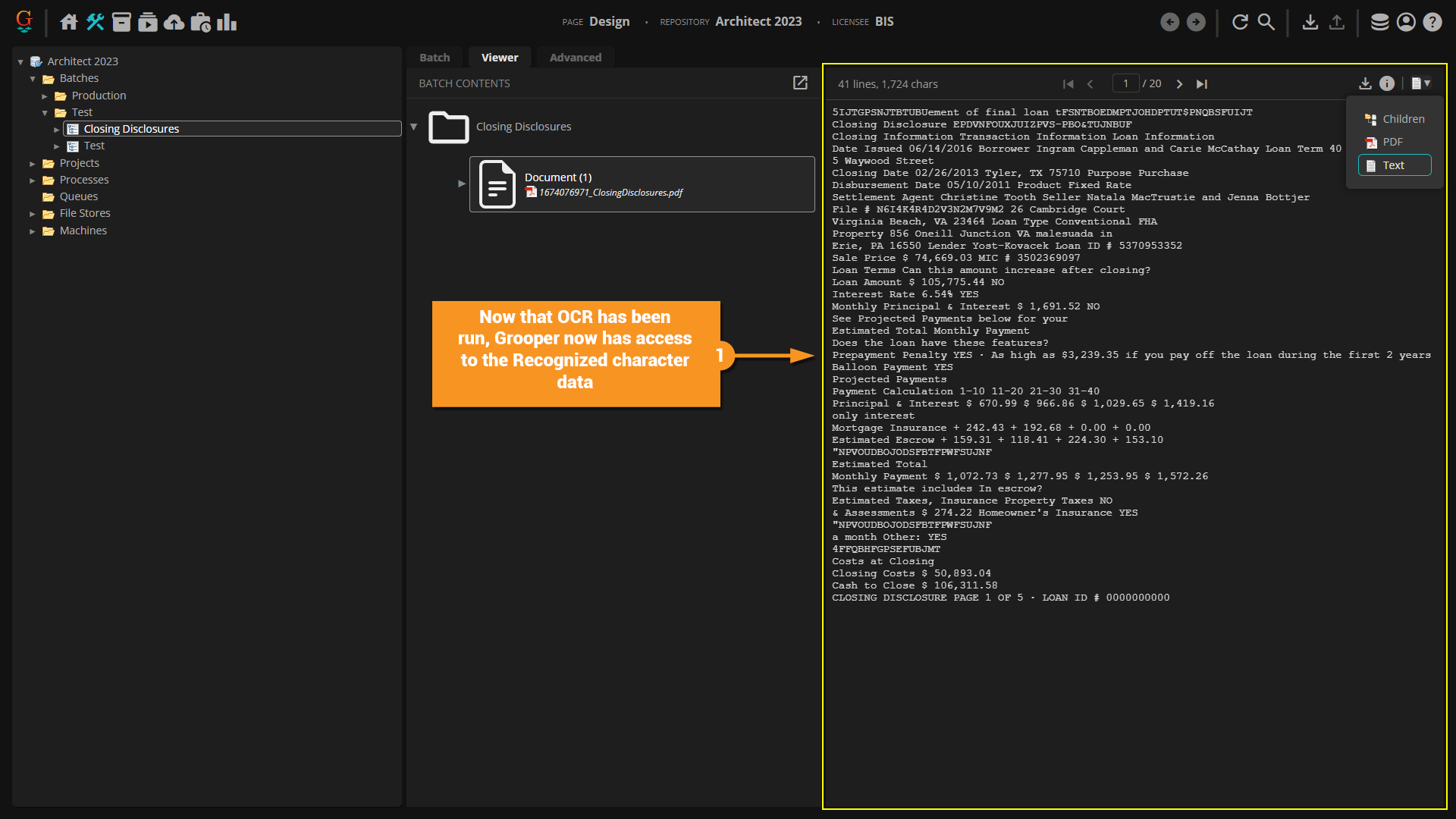 The Grooper Document Viewer is the portal to your documents. It is the UI that allows you to see a folder Batch Folder's (or a contract Batch Page's) image, text content, and more.