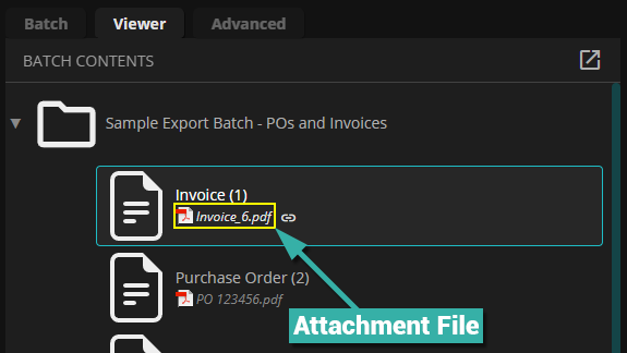 - Use the Filename property to reference a file attached to a Batch Folder by name. The referenced file will be exported instead of the attachment file.