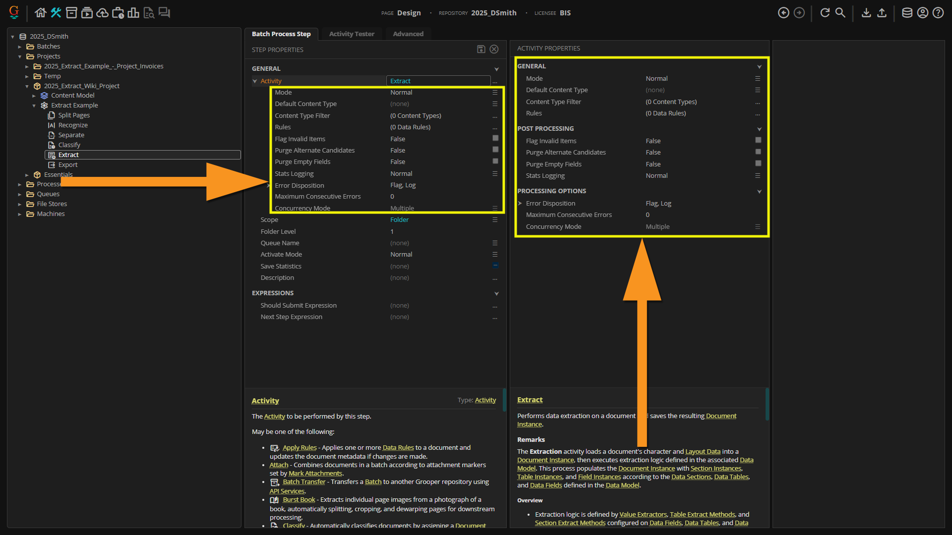 The Extract Activity in Grooper is a core step in document processing that performs data extraction from documents in a Batch. Its main purpose is to populate the Data Model with extracted information, making it available for review, validation, and export.