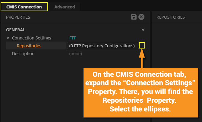 • On the CMIS Connection tab, expand the "Connection Settings" Property.