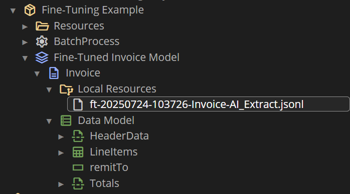 The "Build Fine Tuning File" command will place the fine-tuning file in the parent Content Type's folder_data Local Resources Folder. Right click it to execute the "Start Fine Tuning Job" command.