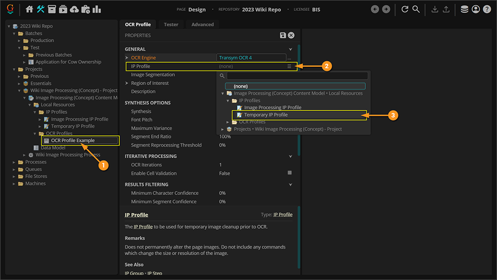 The IP Profile used for temporary IP will be set on an OCR Profile, using the IP Profile property.
