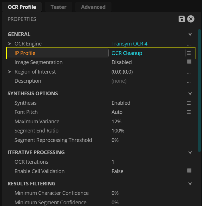 This OCR Profile uses a pre-built IP Profile called "OCR Cleanup"