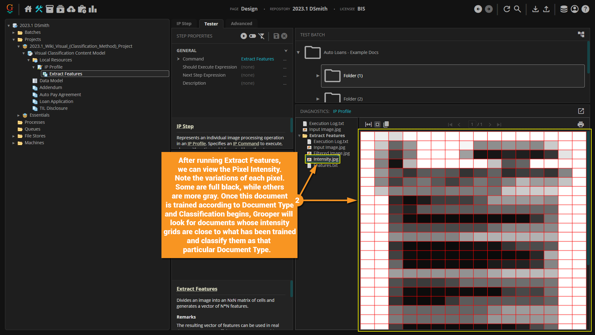 1. Once Extract Features has been run, the intensity is available for viewing. Once the document is trained and classification begins, Grooper will use this intensity grid as a basis, classifying any documents that look like this as the document type it was assigned.