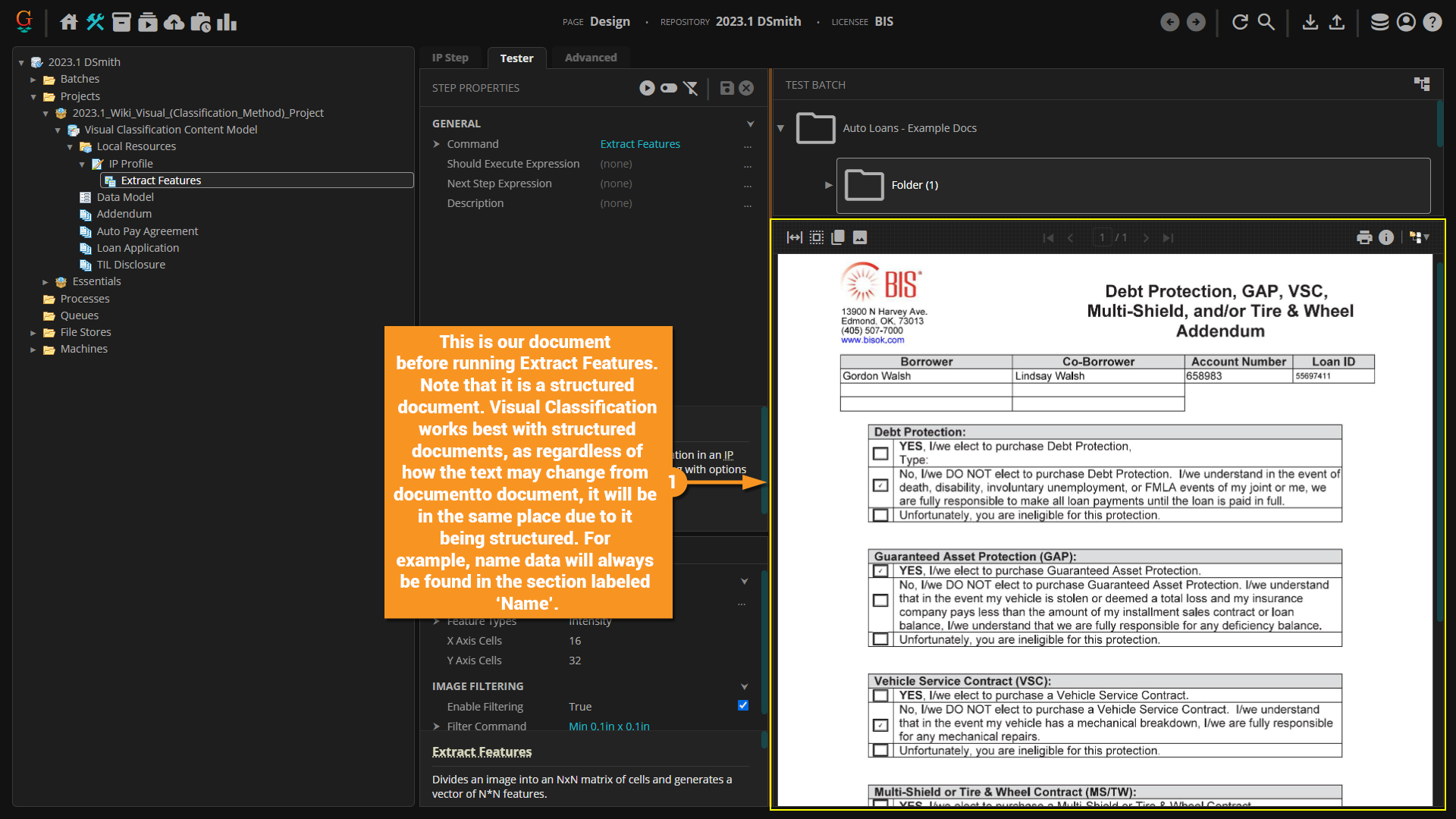 Before you set up your Classification Method, you will need some things first. Namely, an IP Profile and an Extract Features IP Step. What Extract Features does, is create an MxN series of matrices for each document page's image